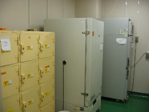 RI用鉛しゃへい冷蔵庫、冷凍庫、保管箱などがある。入室の際にはIDカードが必要である。