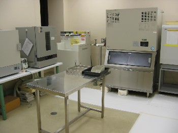 超低温槽、分光光度計、高速液体クロマトグラフィー、製氷機、純水製造装置、実験器具洗浄機、乾燥器などがある。